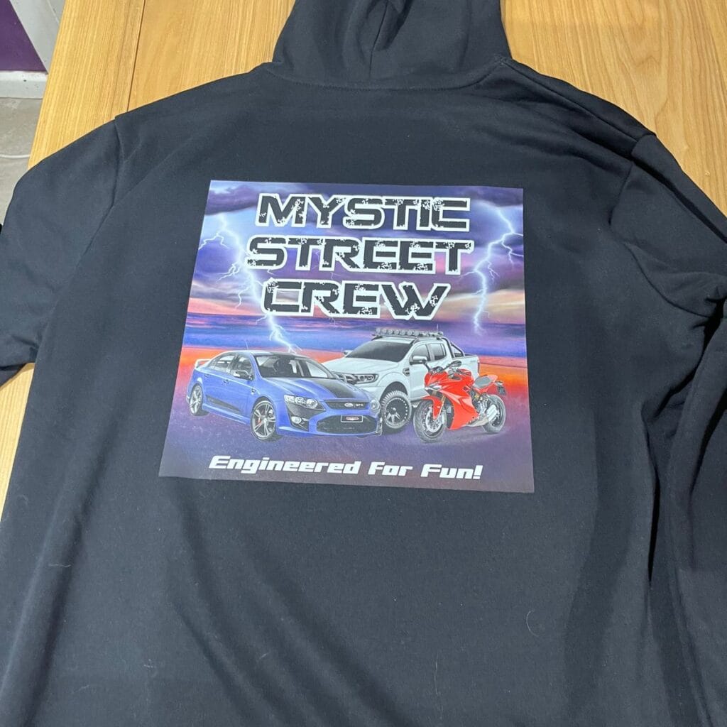 Design using transparent background images unless you want the background printed e.g. JPG’s will have the white background printed. For more tips click check out our blog with helpful imformation on how to best design your Direct to Film prints.